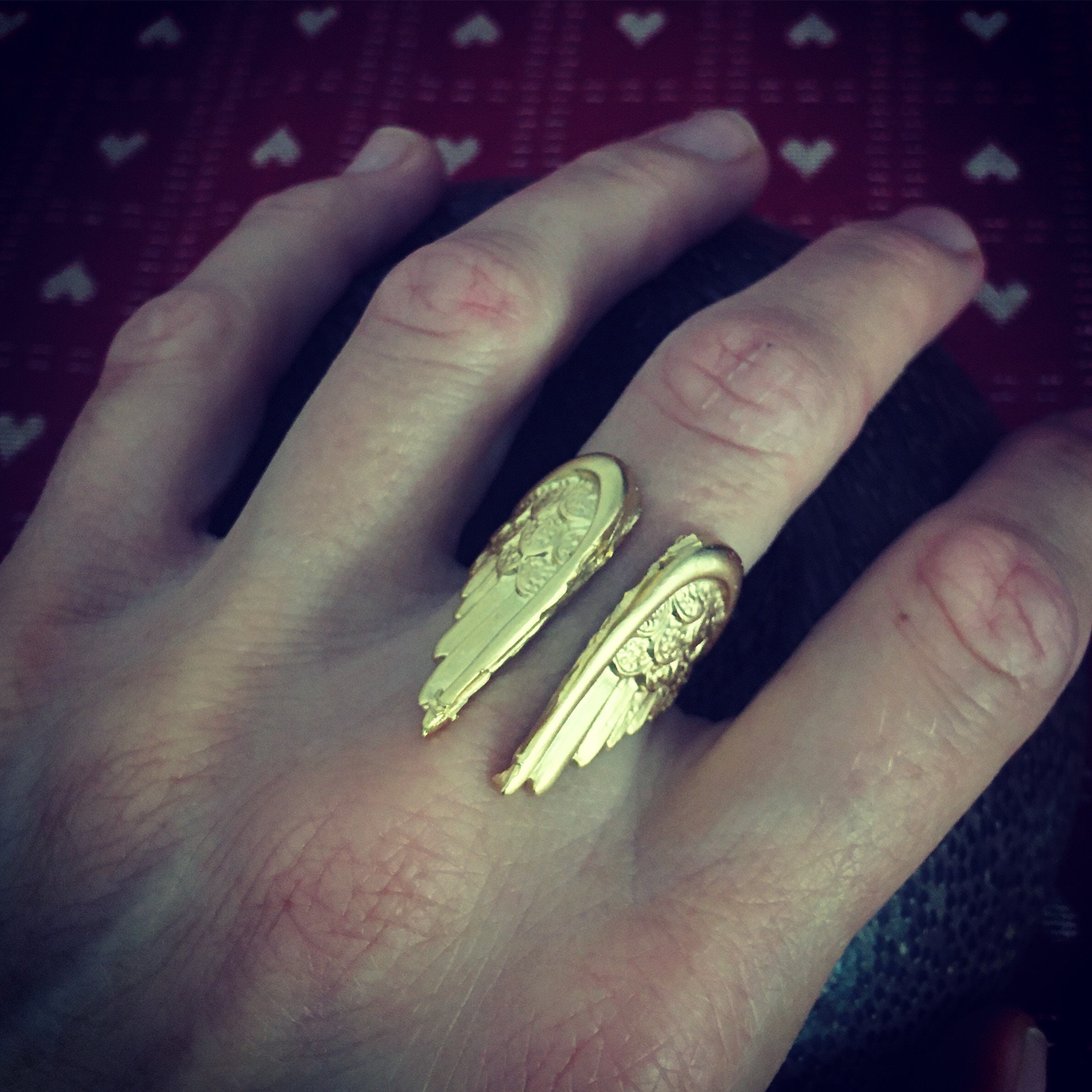 Beautiful solid angel wings ring.