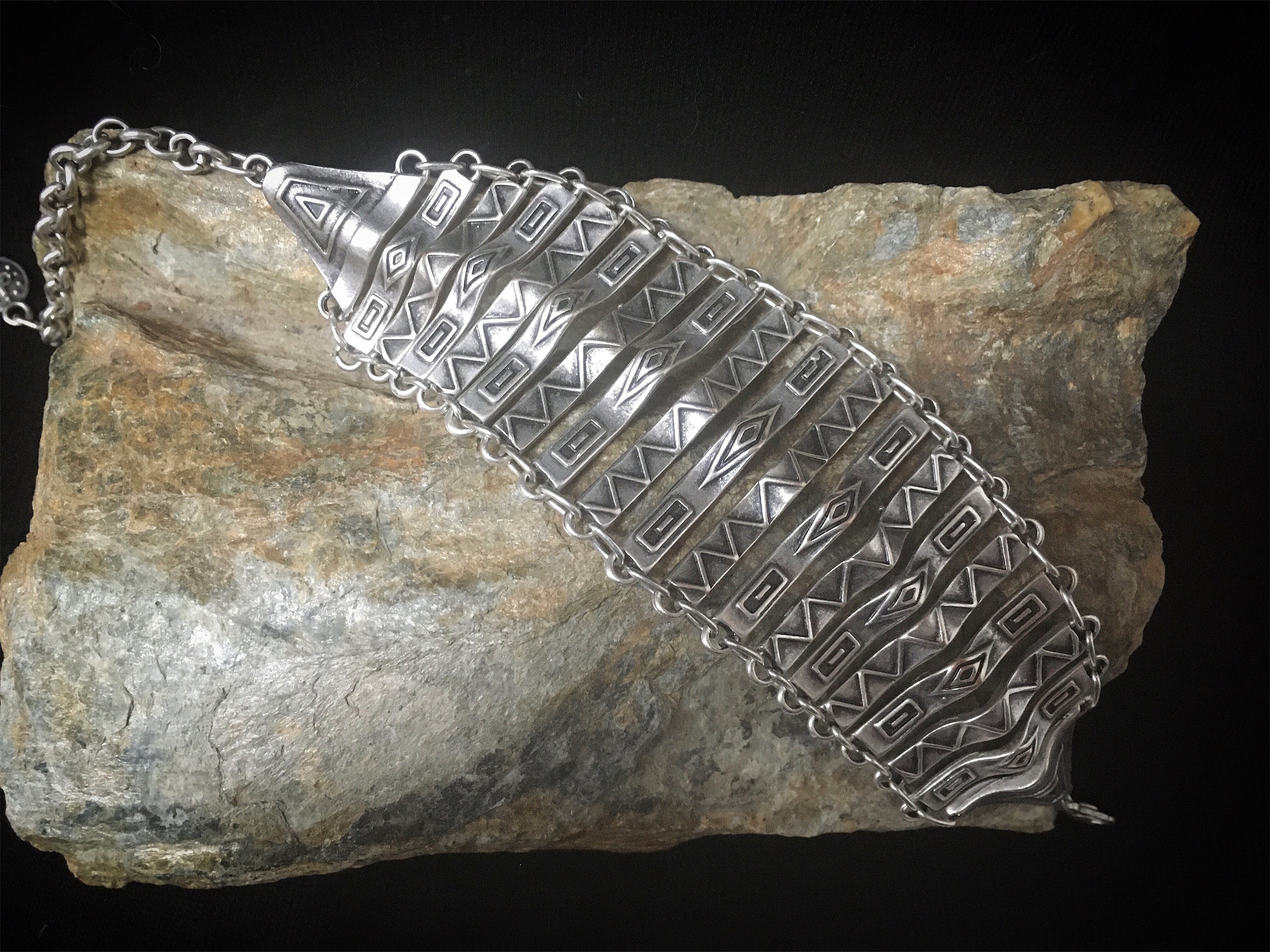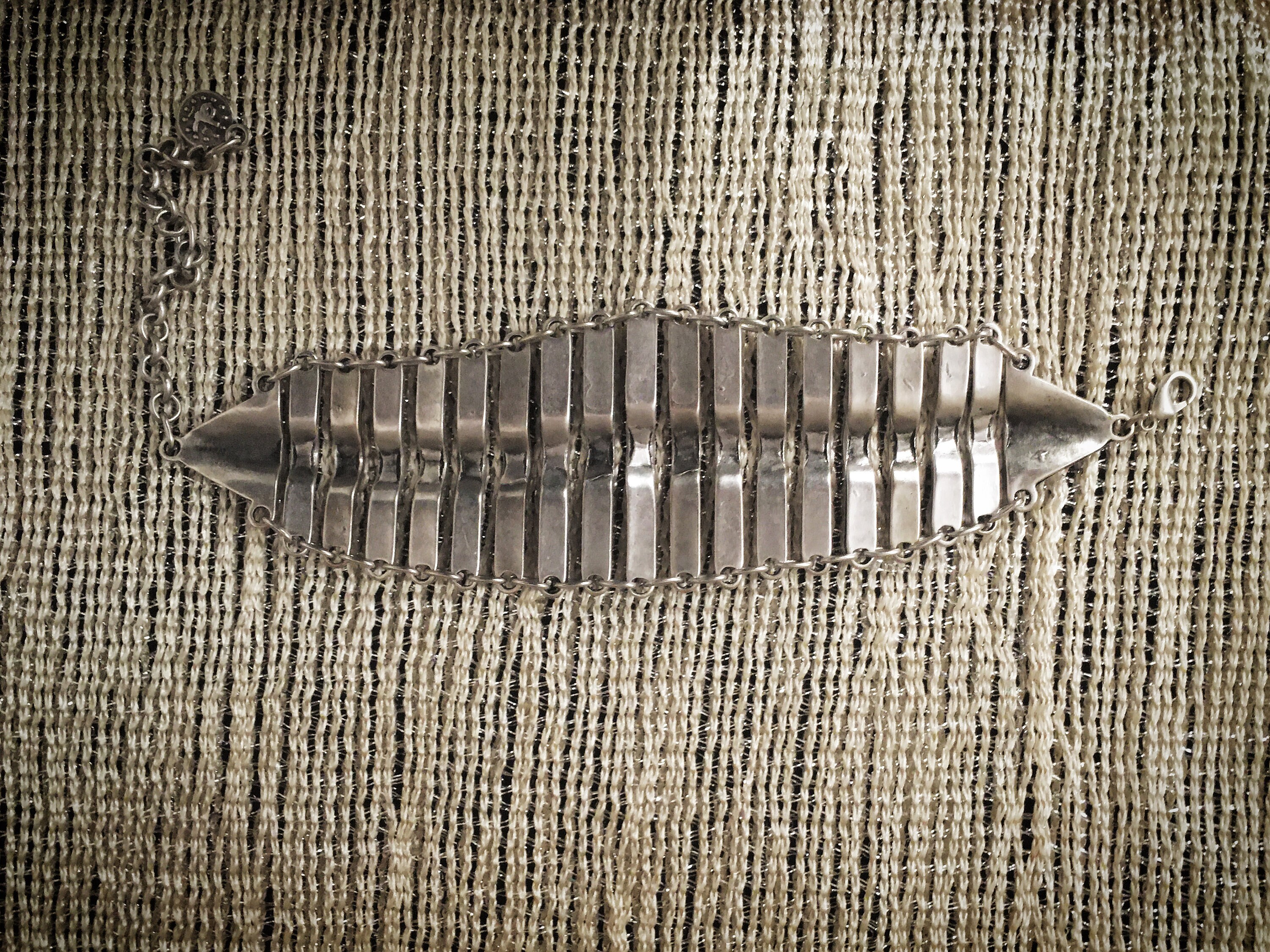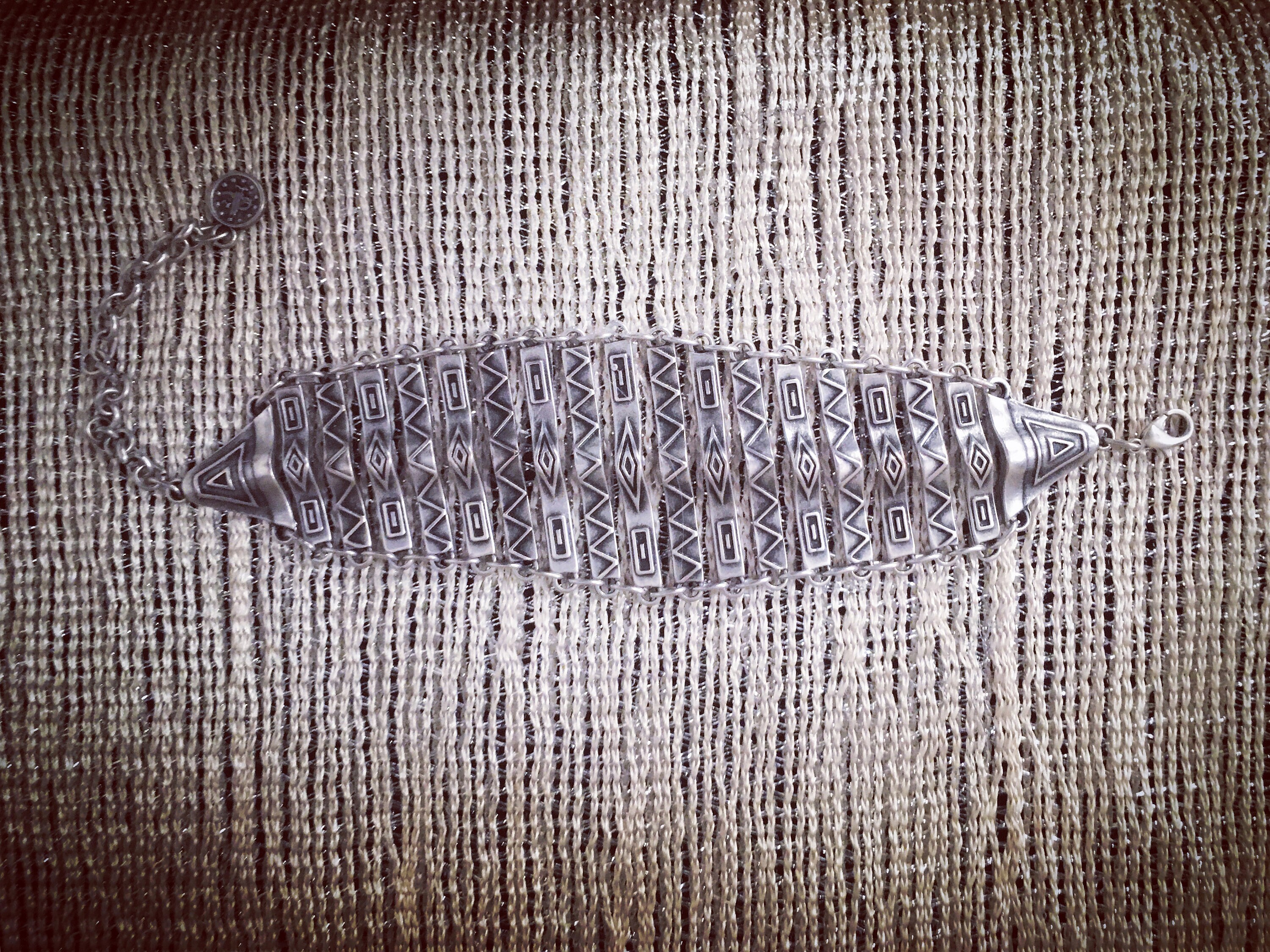 Funky tribal thin chain bracelet, decorated with native geometric pattern and slightly curved in the centre.